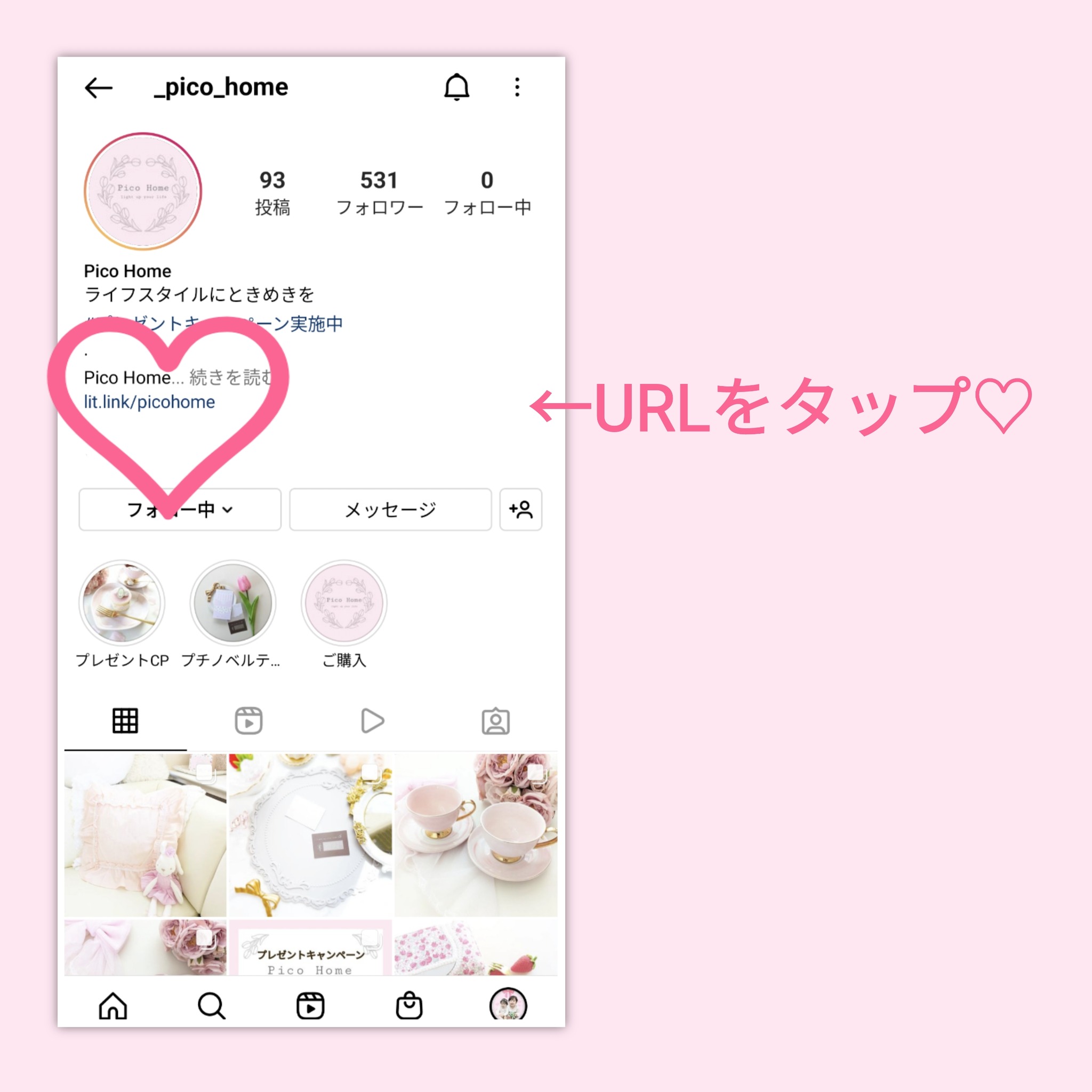 Pico Homeのプロフィールリンクにアクセス